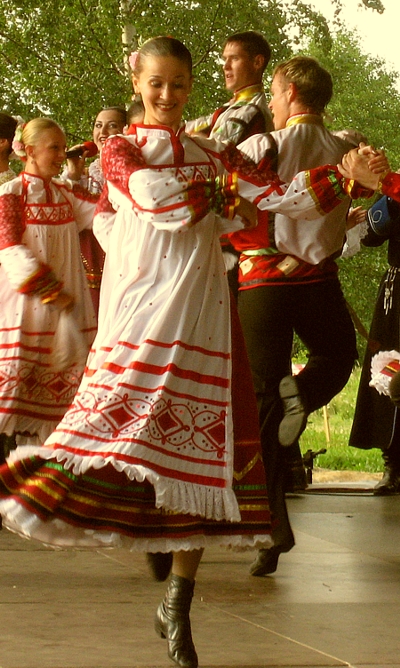 nadieżda sprzedaje folklor na metry i kilogramy.
