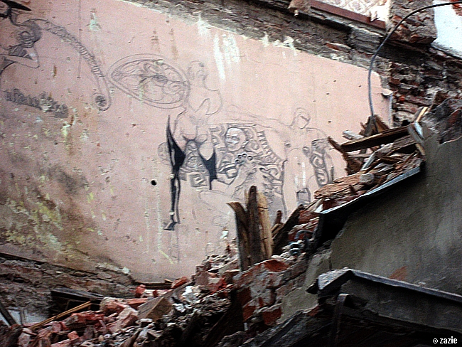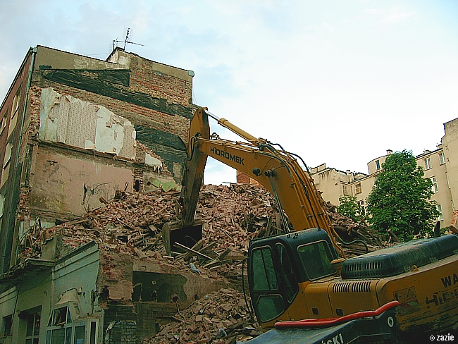 chmielna. koparka weszła w szkodę. niedobra-niegrzeczna. płaczą tapety z trzeciego piętra i freski z drugiego.