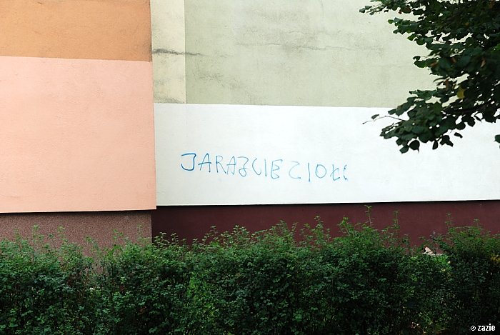 w tym czasie w ramach oddolnej inicjatywy społecznej aktyw blokowy mazał po murach.