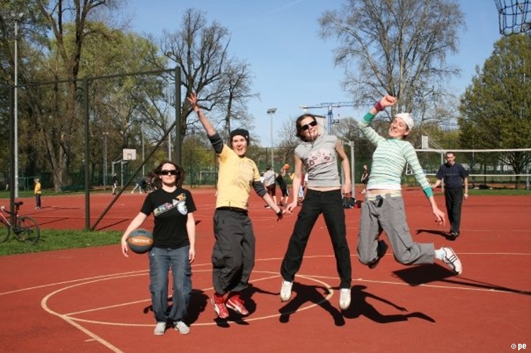 – a teraz ja! najpierw będę żonglować, a potem pokażę wam wiązankę kozłowania, podskoków w dwutakcie i obrotów w przytupie!