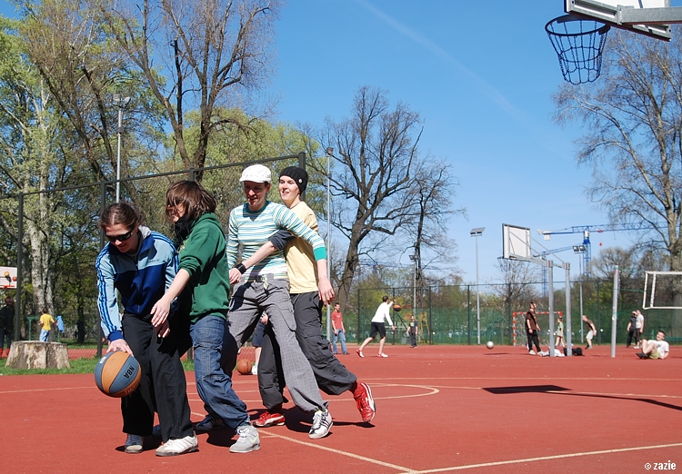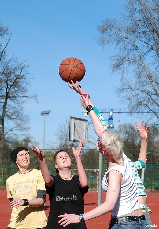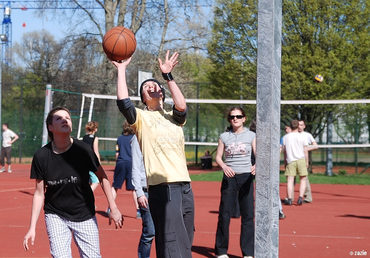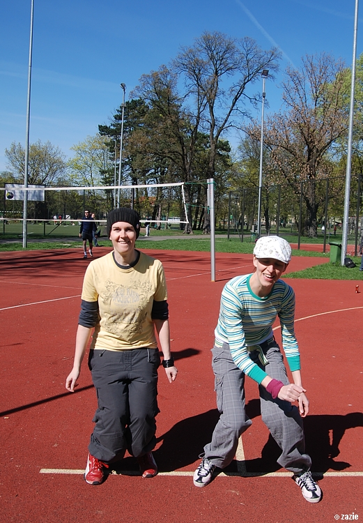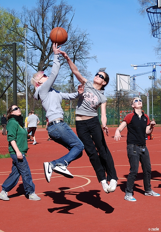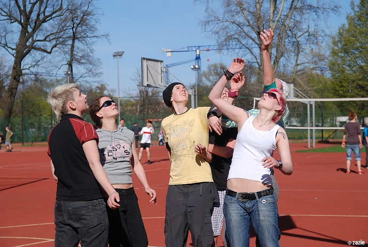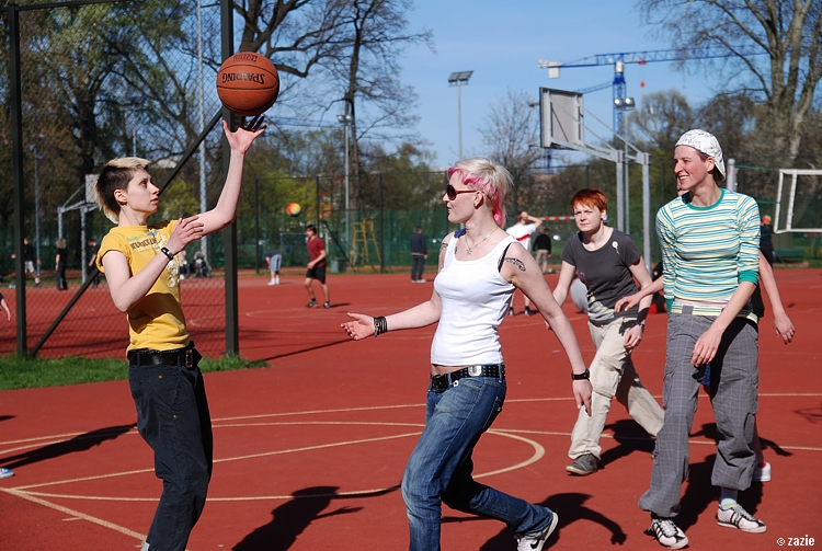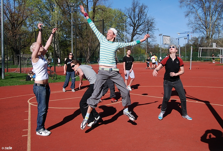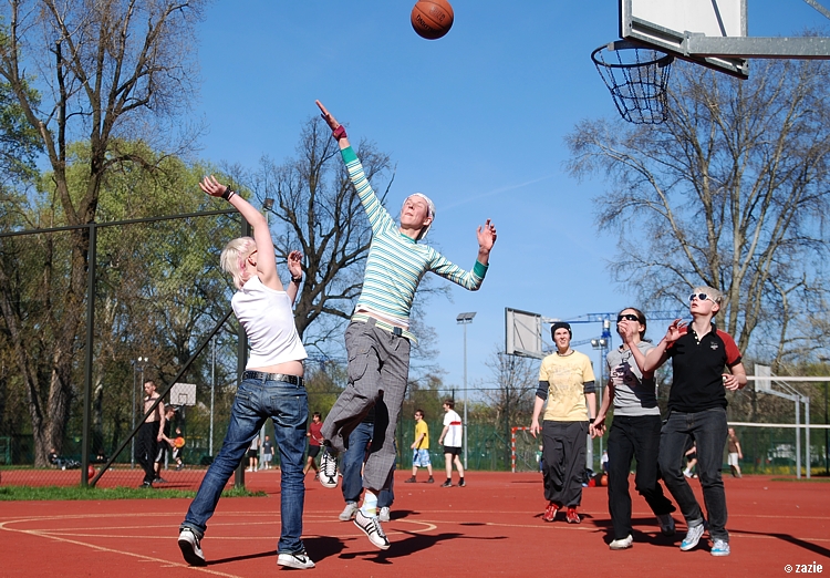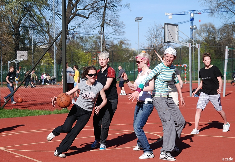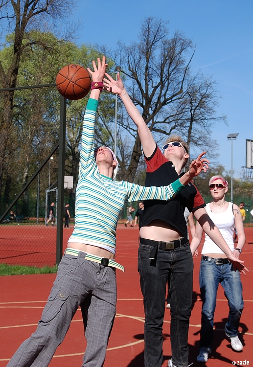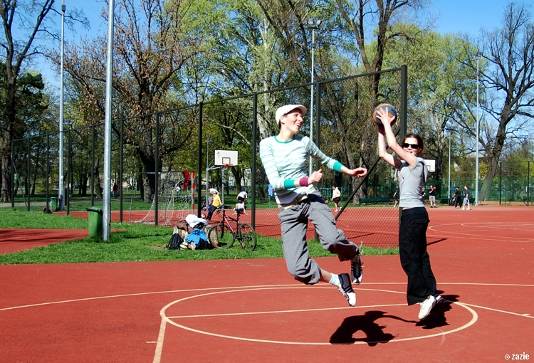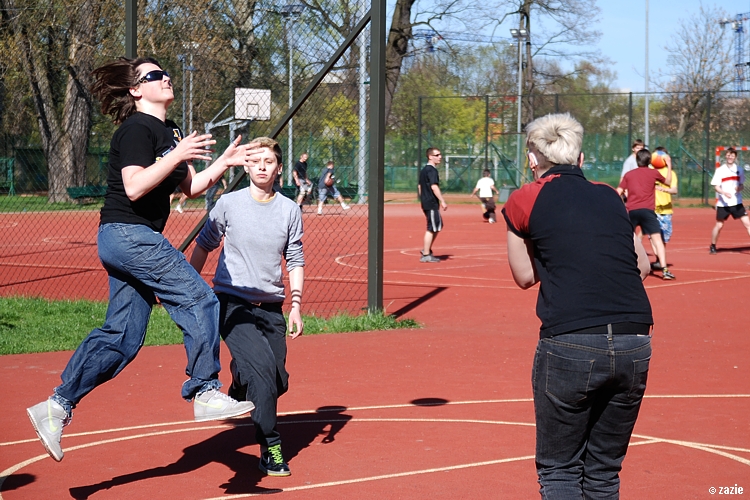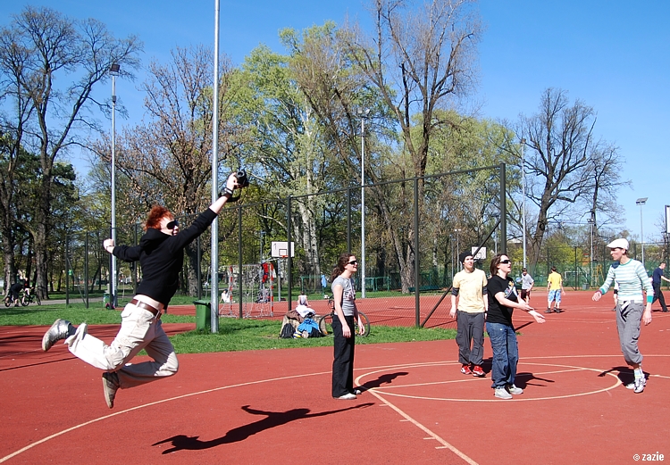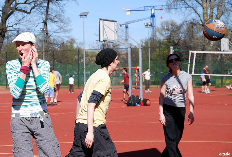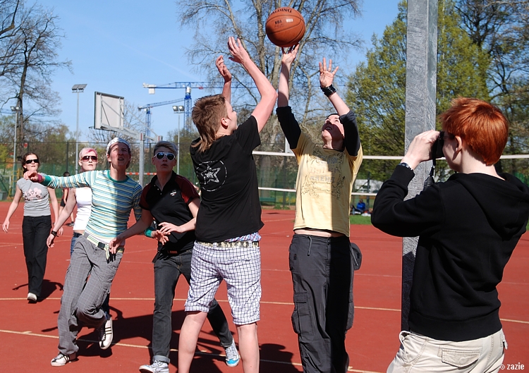 – a teraz ja! najpierw będę żonglować, a potem pokażę wam wiązankę kozłowania, podskoków w dwutakcie i obrotów w przytupie!