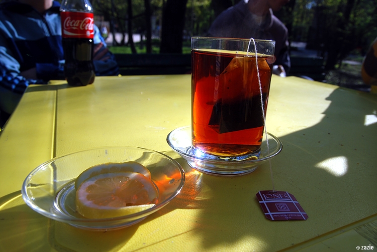 zagraniczna herbata w polskim szkle. cytryna z importu.
