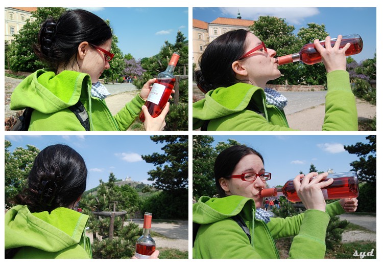 obalamy wielkomorawskie wino. na drugim planie w tej jakże malowniczej scenerii – państwo młodzi uwieczniają się dla potomnych.
