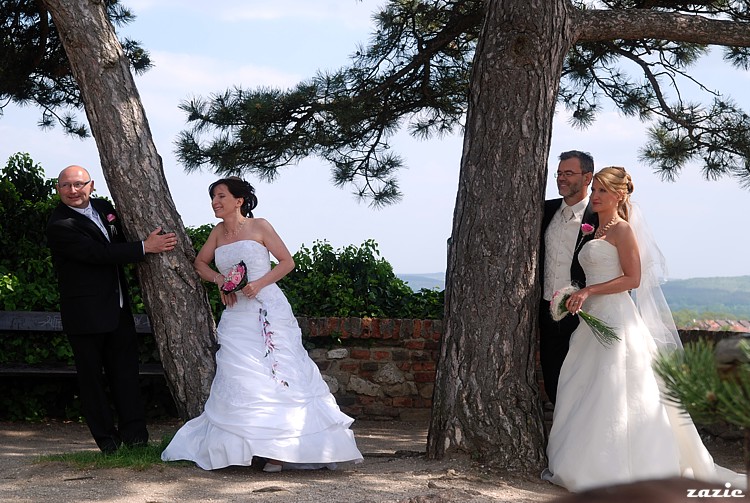 obalamy wielkomorawskie wino. na drugim planie w tej jakże malowniczej scenerii – państwo młodzi uwieczniają się dla potomnych.