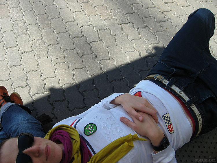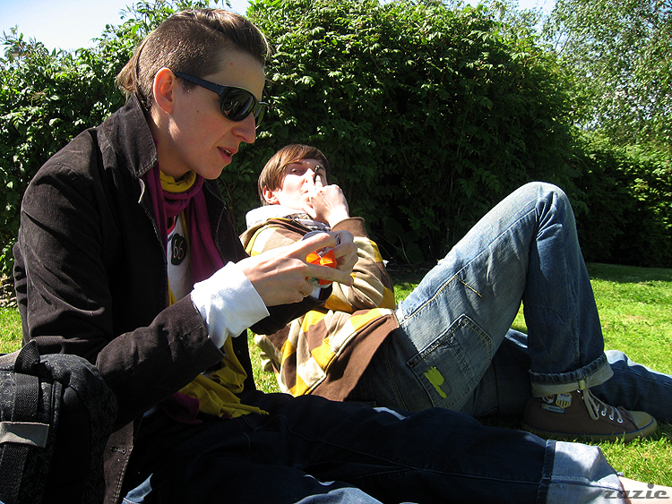 syd pobiegła po czipsy i czekoladę. piknikujemy w oczekiwaniu na Danusia ;)