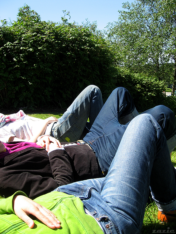 fajna trawa do siedzenia. i żadnych debilnych tabliczek w stylu „nie deptać trawników-szanuj zieleń-zakaz-nakaz-stań na baczność”