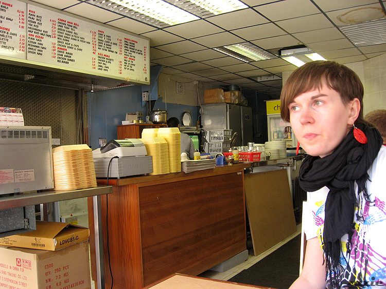 – fish&chips? fish&cheese? chips&chicken? whatever. żeby dostać się do zagrzybionej toalety w lokalnej czipsiarni,