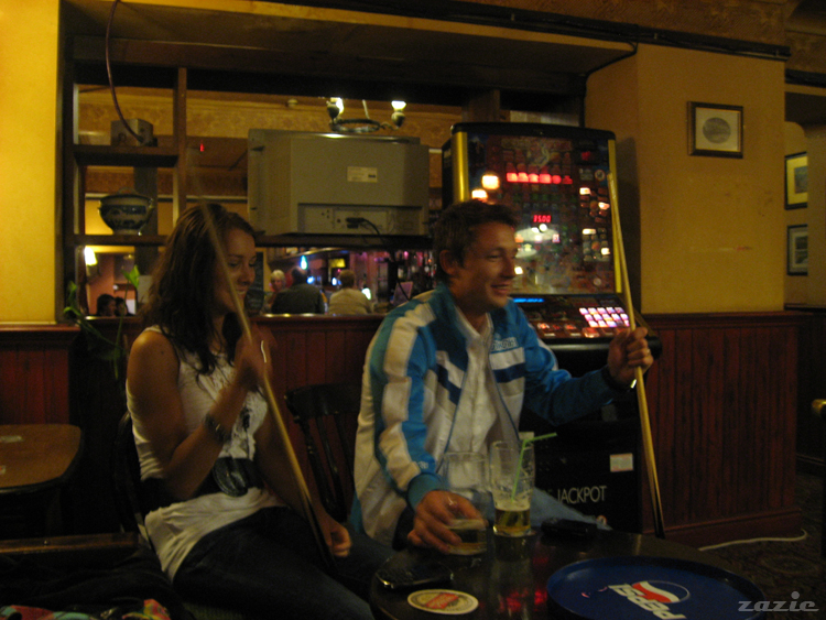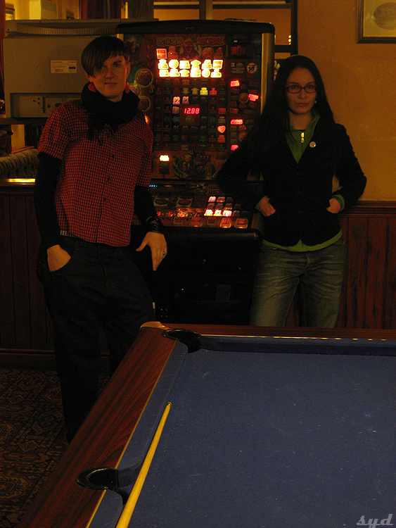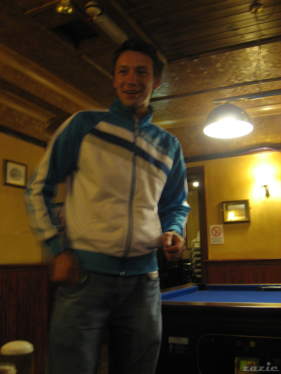 Danuś ubawiony rozmową z barmanem. jest sobotni wieczór. zaraz zamykają ;)