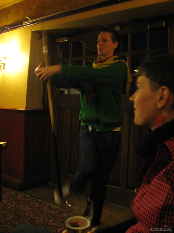 w przerwie – żonglowanie kijem na stopie ;>