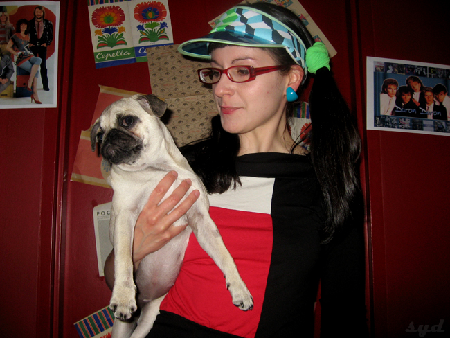 a oto i dżejn fonda, królowa aerobiku, w pełnej krasie. u jej stóp pasie się mops jako dreptająca i pierdząca antyteza fitnesu.