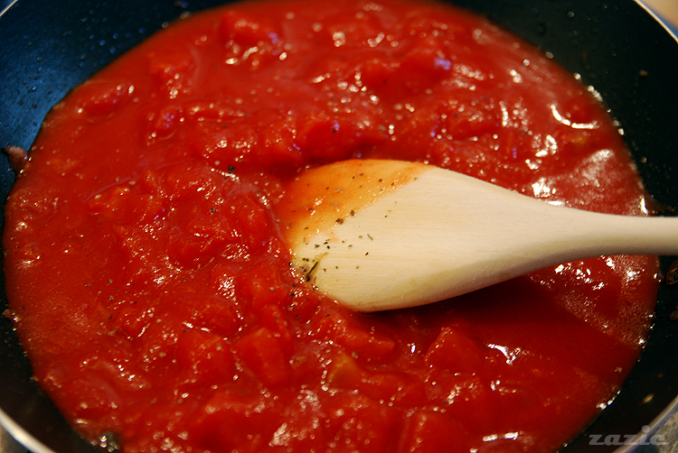 Puszkę pomidorów podsmażyć na oliwie, doprawiając solą i pieprzem. Pilnować, by Zaz nie dolała pół butelki Tabasco.