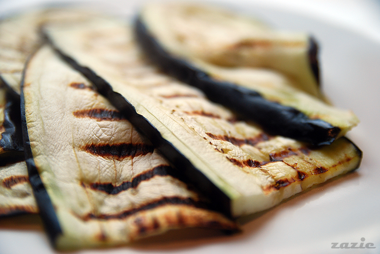 Zgrillowane bakłażany ostudzić na talerzu. Pilnować, by Zaz nie zeżarła.