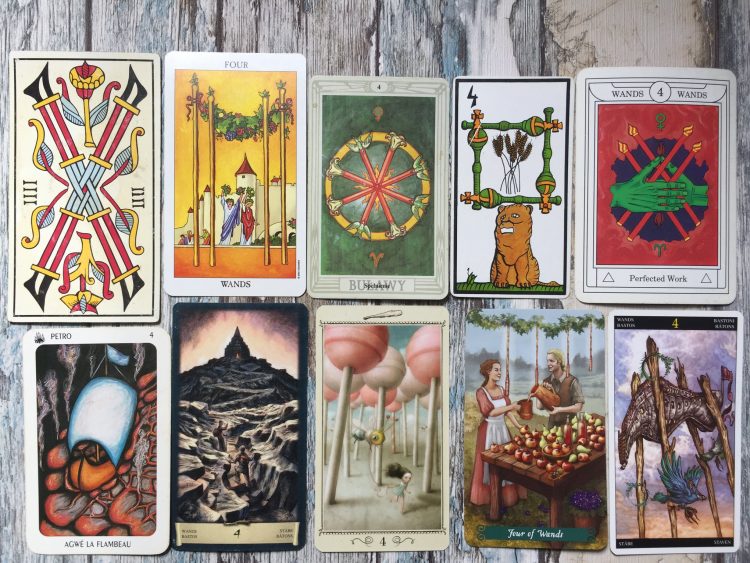 Talie: Tarot de Marseille Jean Dodal, Radiant Rider-Waite Tarot, Tarot Thota, El Gran Tarot Esotérico, The Golden Dawn Magical Tarot, The New Orleans Voodoo Tarot, Dark Grimoire Tarot, Nicoletta Ceccoli Tarot, Green Witch Tarot, Universal Fantasy Tarot
