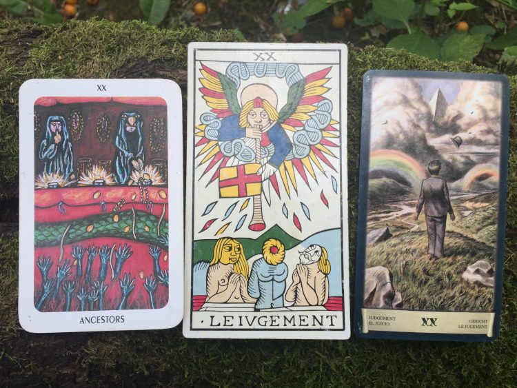 Tę fazę pięknie udramatycznia karta tarota zwana SĄDEM OSTATECZNYM. Przedstawia ona gigantyczną niebiańską postać z rozbłyskującym, rurowatym narzędziem. (…) Nie jest pewne, czy owa postać wypromieniowuje energię (’dęcie w trąbę’ jest oczywiście chropawą, ziemską metaforą tego pozaziemskiego wydarzenia) czy też zasysa energię-materię drogą przyciągania grawitacyjnego (czarna dziura) lub magnetycznego.