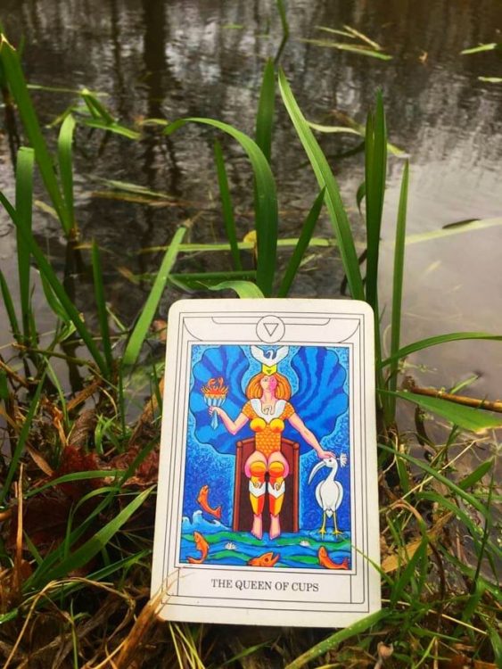 Według nauk Hermetycznego Zakonu Złotego Brzasku królowa kielichów reprezentuje wodny aspekt żywiołu wody i w związku z tym mówi o poddaniu się wpływom, o spokojnym dostosowaniu się do okoliczności, o czystości intencji, o refleksyjności, o otwarciu na wizje. Jej magiczne tytuły to Królowa Tronów Wód oraz Królowa Ondyn (ondyny to wg Paracelsusa żywiołaki wody). Rządzi kawałkiem nieba rozciągającym się od 20º Bliźniąt do 20º Raka, w obszarze jej panowania mieści się zatem dziesiątka mieczy (korespondująca z ostatnim dekanatem Bliźniąt), dwójka kielichów (korespondująca z pierwszym dekanatem Raka) i trójka kielichów (korespondująca z drugim dekanatem Raka). Druga i trzecia z wymienionych blotek dobrze oddają właściwości królowej kielichów w standardowych warunkach: to uczuciowość, receptywność, umiłowanie tego, co łagodne, harmonijne, przyjemne, pełne wdzięku i poezji – na to wszystko nastawcie się dzisiaj! Pierwsza z nich reprezentuje natomiast cienisty aspekt tej figury: w stresowych sytuacjach myśli królowej kielichów ulegają fragmentacji i rozproszeniu, zwracają się jedna przeciwko drugiej, królową dopada katastroficzny nastrój i poczucie dysharmonii – i tego postarajcie się uniknąć.