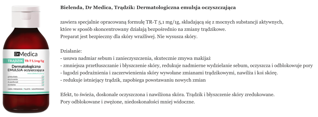 skład i opinie BIELENDA Bielenda Dr Medica Trądzik dermatologiczna emulsja oczyszczająca do skóry tłustej ze skłonnością do trądziku