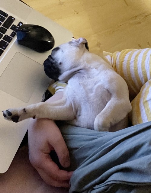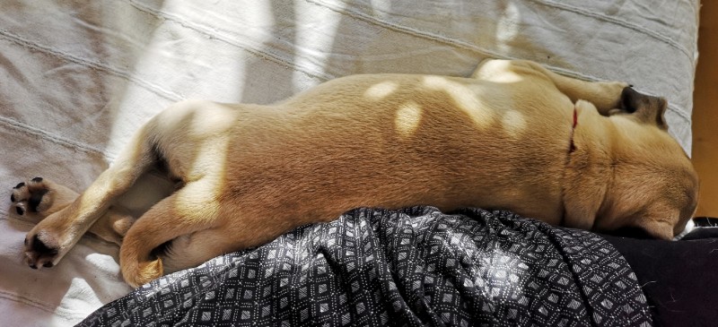 Oczywiście, można mówić, że mopsy mają to w genach, ale „robienie kreta” w wykonaniu Kumoka było bardzo charakterystyczne i dokładnie tak samo – zgodnie ze sztuką i najlepszymi praktykami – wykonuje je teraz Małe Czuczu. Wniosek? Kumok musiała ją tego nauczyć ;))