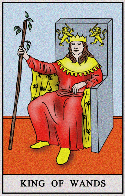 Król Buław reprezentuje potężnego, zdecydowanego mężczyznę, który posiada silną potrzebę kierowania i osiągania sukcesów. Jako trzydziesta szósta karta talii, jest dziewiątką, co podkreśla jego ognistą determinację i przywódcze cechy. Jego dominujący cel to panowanie, co podporządkowuje wszystkie działania.