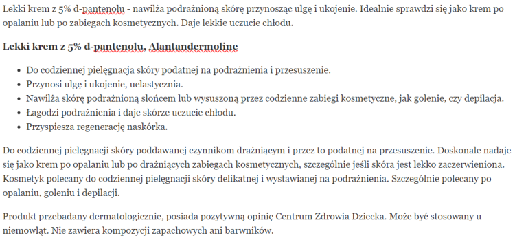 skład i opinie Alantan Dermoline lekki krem z 5% d-pantenolu