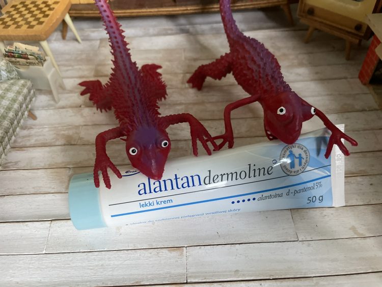 Nałożony rano na jakieś proste serum z kwasem hialuronowym Alantan Dermoline wchłania się niemal do matu, stając się idealną bazą pod makijaż. Stosowany wieczorem – daje skórze pierwszy strzał nawilżenia, a potem z powodzeniem może być pokryty jakimś bardziej treściwym szuwaksem, np. olejem i tłustym kremem (- Czy wspominałam już, że od jakiegoś czasu stosuję pielęgnację warstwową? Nie? No to niniejszym wspominam i polecam, to prawdziwy game-changer w moim przypadku!)